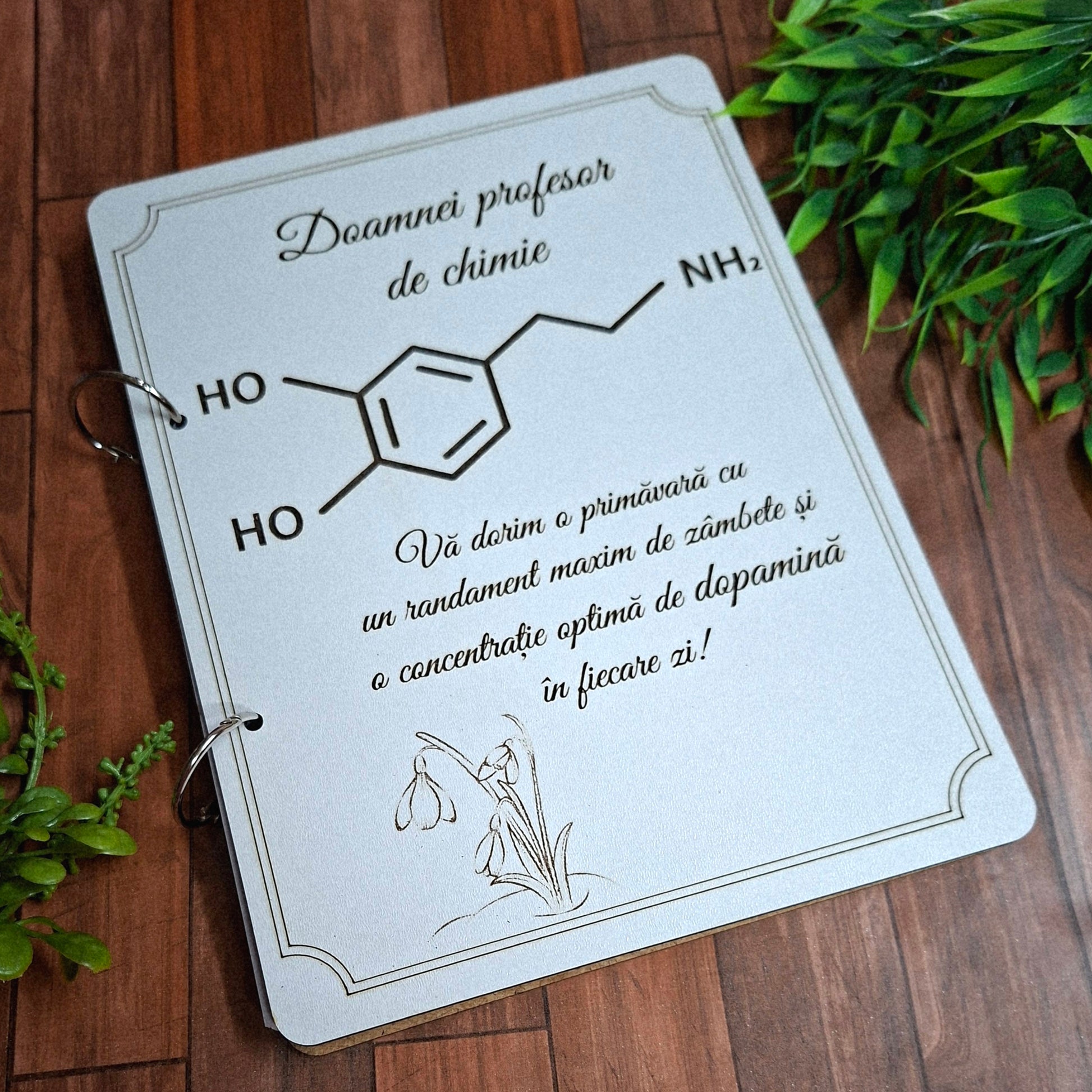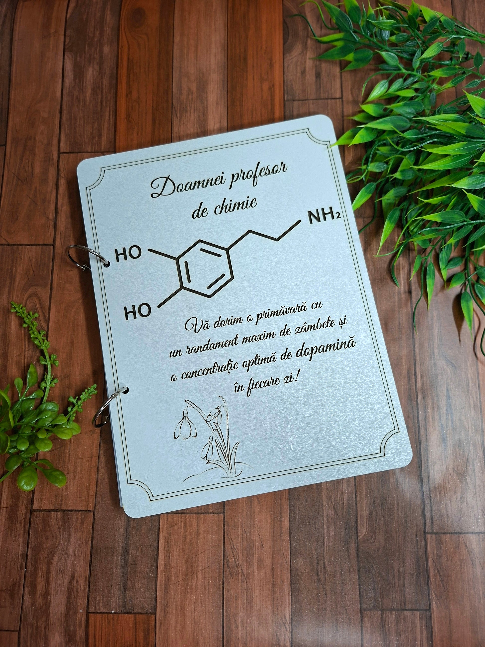 Agendă premium „Dopamina” pentru profesoara de Chimie – Cadou personalizat A5 din MDF